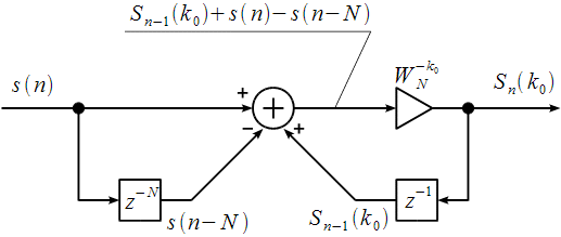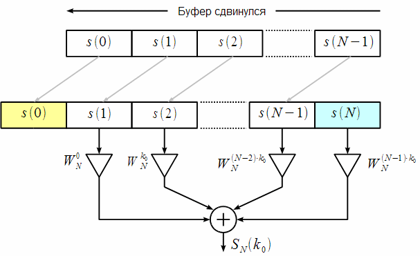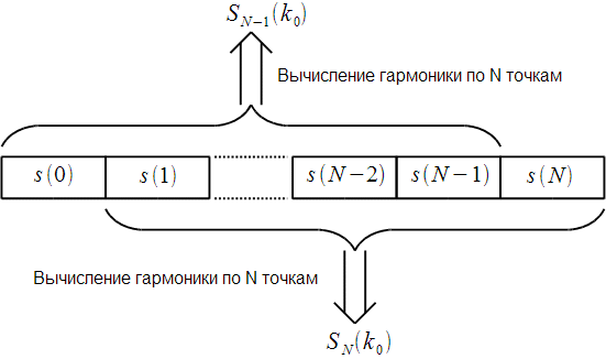 алгоритма Герцеля для пересчета спектрального отсчета на каждом