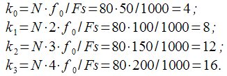 точек. Тогда номера спектральных отсчетов соответствующих первым