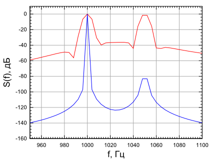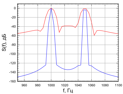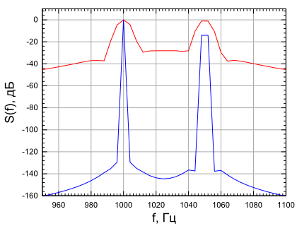 Уровень потерянной гармоники незначительно ниже реального уровня (примерно на 2...3 дБ). Но наблюдается расширение основного пика при полифазной обработке.